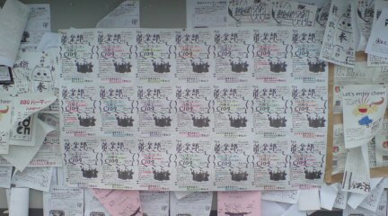 以下は川内北キャンパスの掲示板の様子。おそらく能楽部一番大きいビラ形態だと(笑)↓↓↓