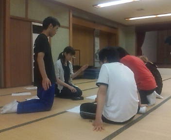 三時間くらいかかって全員分の仕舞を終えて、30分の休憩タイム。OGにいただいたお土産を食べながら、いろいろ話し合ったり、大の字に寝転がったりしました。だって休憩なんだもの…